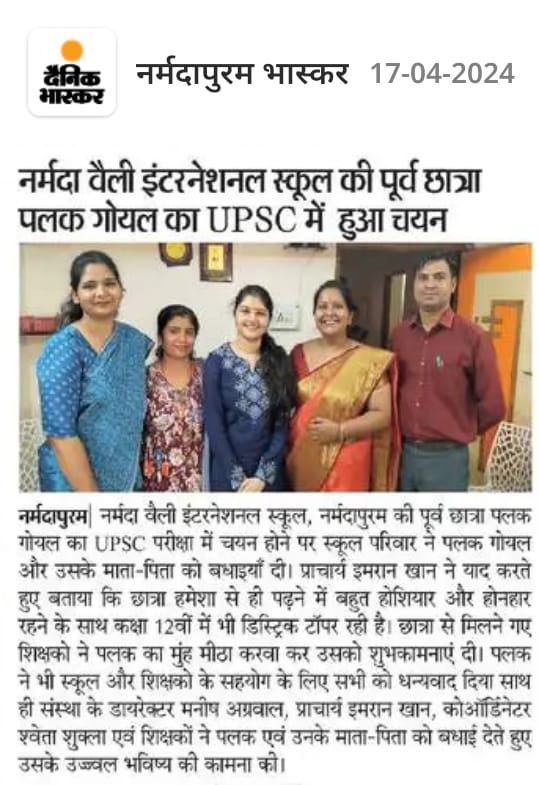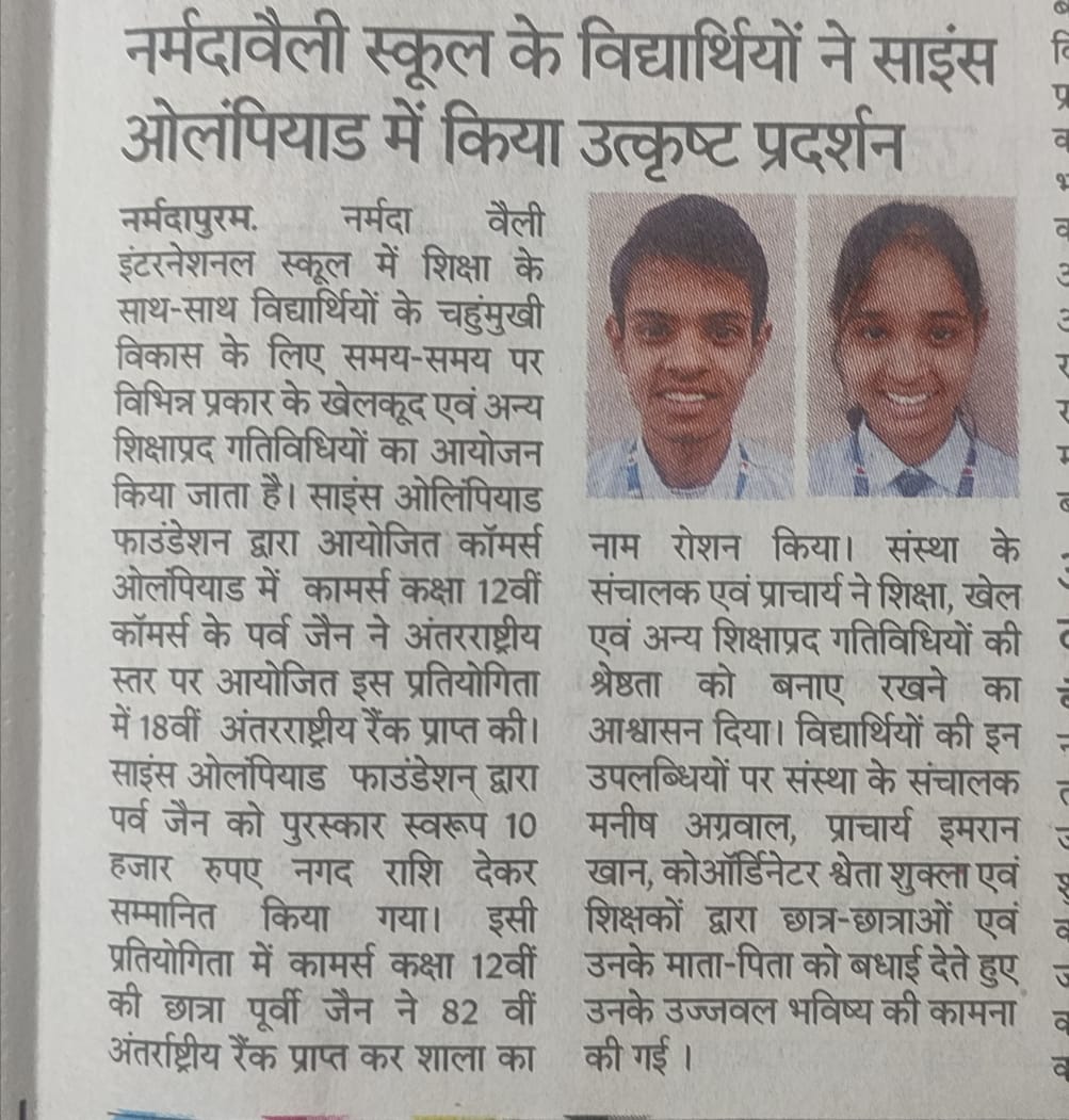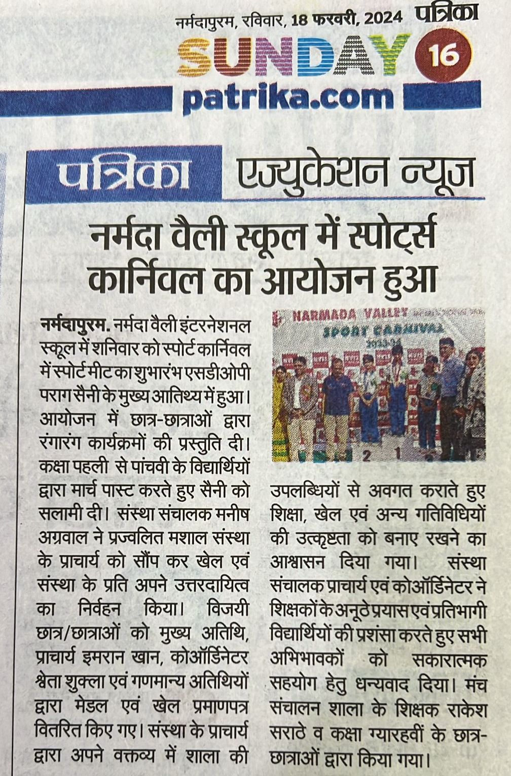 Narmada Valley International School, Narmadapuram (M.P.) in Media News